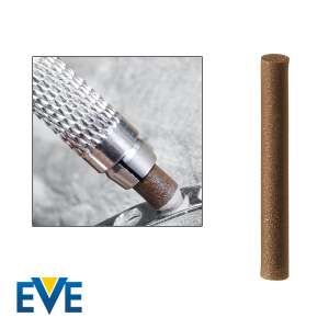 For surface decoration (pearling or striation) and for fine machining work, these rod polishers can be individually shaped. The polishers are bound in artificial resin, and an additional polishing agent is not required.