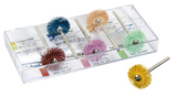 For cleaning, pre-polishing and machining gold, silver, copper, tin and brass. Disc brushes with fine-grain polishing medium in polyamide. No addtional polishing agent is required for these discs: recommended speed 5.000 rpm.