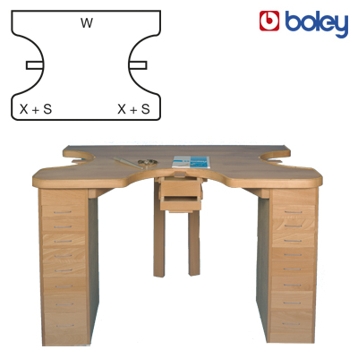 The workbench tops are made of red beech wood for self-assembly on the wall, suitable for the individual drawer columns (604542 and 604544). They are supplied with double drawers, file holders and table legs, but without workbench protectors and covers.