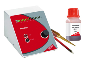 The PICCO+ and JUNIOR 120 pen electroplating devices are particularly suitable for the efficient and spot-free application of rhodium, gold and silver. They are especially suitable for use in the finishing of parts with very complex shapes and for the creation of multi-coloured surfaces. Layer thicknesses of around 0.1 µm are possible.