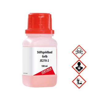The gold bath JE270-2 is especially suitable for partial plating, for multi-colour processeing and reparation or restoration. The deposited coatings have a nice yellow gold colour. JE270-2 deposits uniform gold layers and has a strong colour consistency.