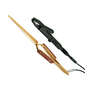 These contact tweezers are required (in combination with the electrode stylus) to be able to use the immersion electroplating as a pin electroplating without having to purchase an additional unit. Contact tweezers compl. with crocodile clip.