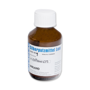 The article to be silvered must be cleaned and freed of oil or grease before treatment. The silver polish is rubbed evenly with a moist cloth. Immediately after treatment, the article must be rinsed.