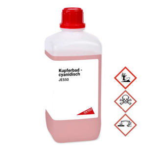 The Cyanide Copper Bath JE550 is suitable for frame and barrel plating. Because of its excellent throwing power and adehesive strength the electolyte is often used as an under coat before further electroplating processes. The copper layers are fine-grained and slightly bright and create a very good adhesion between base material and final layer.