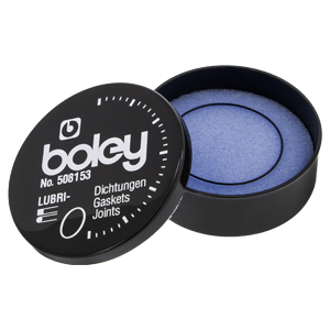 Practical sealing grease box with silicone pads at the top and bottom, in which the gaskets is embedded and greased. Also suitable for XL joints up to Ø 60mm. Swiss version with blue silicone pads.
