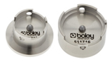 To open the barrel, place it on the support with the cover facing downwards. By placing and pressing the tool cover, the arbor together with the barrel cover is pressed outwards and opened. To close the barrel, place it in the centre of the tool carrier with the cover facing upwards. By pressing on the plastic cover, the barrel is closed easily and evenly and without damage.