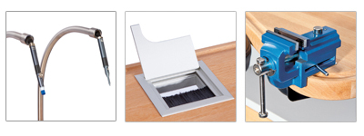 optional equipmentMatching special equipments for your workbench for watchmakers. Subgroups bench top nameVersionitem No.cuttingfor workbench underlays508799 pressure and vacuum nameVersionadditionitem No.pressure-/vacuumBoleyincl. handpieces602443pressure-/vacuumBoleywithout handpiece602445pressure-/vacuumBergeonincl. handpieces602444stainless steel pipecurvedf. compressed air or vacuum602446counterweightØ 6.0 mmf. compressed air pipe602447counterweightØ 8.0 mmf. vacuum pipe602448pre-assemblywork in602432 vacuum changeover jet nameVersiontypeadditionitem No.vacuum changeover jetsingle placeVenturi substructurewith foot switch611254 watchmaker's vice nameVersionwidth of jawspanmanufactureitem No.vicewith quick release45 mm35 mmBoley509425vicewith quick release45 mm35 mmBergeon509424pre-assemblyfor plate602433 central locking nameVersionadditionitem No.central lockingf. stack of drawerslockable602428 division draver nameVersionadditionitem No.division draverSolid beech6 compartments602420 Cable conduit cover nameVersionadditionitem No.coverfor cable ductwith hinge602425 Double back panel nameVersionadditionitem No.Double back panelin footwellCover602409 Upstand nameVersionadditionitem No.backsplashfor worktopHight 20mm602402 Increase of load capacity nameVersionadditionitem No.increase of load capacityincrease of load capacityfrom 80 kg to 100 kg602422 Cleanroom foot stand nameVersionadditionitem No.foot standClean Roomin U-shape602424 Cable aperture bar nameVersionPUitem No.cable exitwith brushes1 piece602548 Flexbo Connect nameVersionPUitem No.cable exitwith brushes1 piece602541power socketincl. rotating lid1 piece602542Power socket + USB-Cincl. rotating lid1 piece602546Connect Basic2x cable passagescomplete set602550Connect Basic Pluspassage + built-in socketcomplete set602551Connect Comfort2x passages + built-in socketcomplete set602552 Flexbo Design nameVersionPUitem No.Power socket + USB-Cincl. flip-top lid2 pieces602547 armrests watchmaker's bench nameVersionmanufactureitem No.arm restsfor watchmaker's benchBoley602093 arm rests universal nameVersionmanufactureadditionitem No.arm restsErgonomicBergeonNon-slip602097 foot rest nameVersionadditionitem No.foot restinfinitely variableadjustable602455 protection cloth for benches nameVersionadditionitem No.protecting cloth for benchesanti-statictop quality602462 Linseed oil varnish nameVersioncontentsitem No.Linseed oil varnishcolourless1000 ml602065 Wax stick nameVersionadditionitem No.Wax stickBeechRepair - Soft wax602066