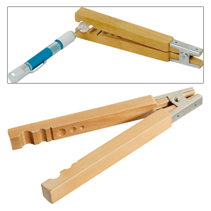 Wooden pliers for holding pearls and beads without tiring in order to drill them through accurately.