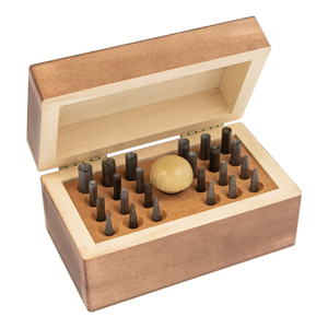 The setting closers are made of top-grade steel and has a conical hollow. It is for quick and even closure of stone settings and is supplied with a universal handle in a wooden case.