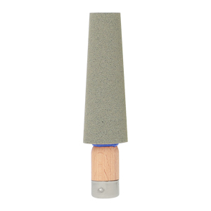 The Artifex ring triblet is of synthetic rubber sponge and contains silicon carbide abrasive. It has a drilled wooden shaft.
