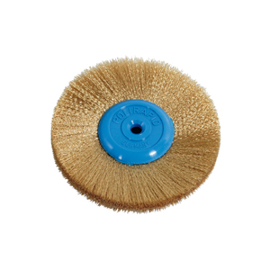 Quality circular brush with brass wire and plastic core for cleaning and grinding of surfaces.