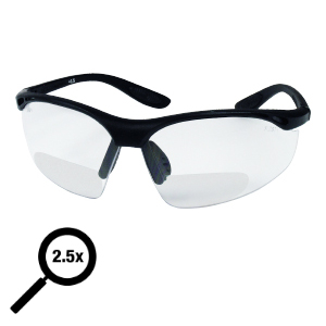 Modern safety glasses in a new design with very high wearing comfort. The protective goggles have integrated magnification inserts in 2.5x. Ideal for working on small parts, as well as for reading between.