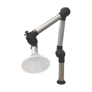 Articulated extraction arm with shut-off damper made of anodised aluminium for the extraction of gases, smoke or dust. Joints made of high-strength plastic.