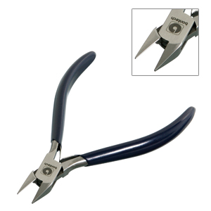 Small handy side cutter of nickel plated steel for resistance to rust and corrosion. All pliers are polished, grips with blue plastic coating and double leaf-springs.