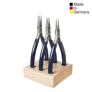 Small handy pliers nickel-plated steel for fine work. Stainless and corrosion resistant, handles blue plastic cover and dual leaf spring. Made in Germany.