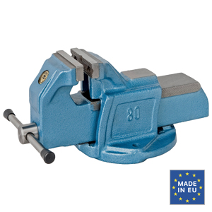 Precision vise with rectangular guide, replaceable and induction hardened jaws. Body made of cast iron, jaws, base and remaining parts made of alloy steel. Made in EU.