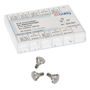 Assortment of the most common screws for battery brackets suitable for the current ETA quartz movements.