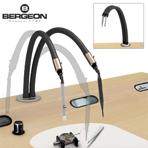 Complete system for compressed air and vacuum in the workplace. Practical and flexible curved double tubes for assembly on the work table. Due to the angled by 45 ° handpieces a natural hand movement is given in gripping the hand pieces. The flexible swan-neck can be individually tailored to the workplace. An automatic return mechanism, moves after non-use, operated by a handle, the handpieces automatically back into the device.