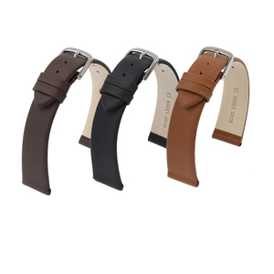 strong, water-repellent calfskin leather strap with smooth surface and curved edges.