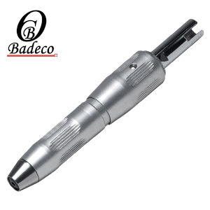 Robust and ball-bearing quick change handpiece fits for hanging motors with flexible shaft.