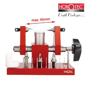 Combination tool from Swiss production. Case opener, bezel extractor and bracelet shortening tool, which works extremely precisely thanks to its adjustable height compensation, the precision threaded spindle and a non-slip base on the underside.