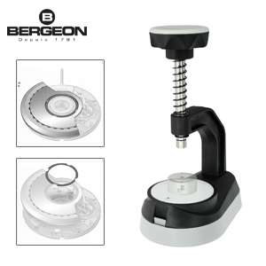 Special press for loosening or fixing the rotor retaining springs (rotating mass). With two different inserts to suit Valjoux 7750-7770, ETA 2000/1 and ETA 2890 to 2897.