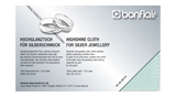Bonflair Silver cleaning and highshine cloth ProductsSilver cleaning cloth nameVersionmanufacturedimensionsPUitem No.Silver cleaning clothwaterproofBoley15 x 16 cm1/12507236Silver highshine cloth nameVersionmanufacturedimensionsPUitem No.Silver highshine clothwaterproofBoley300 x 350 mm1/12507211