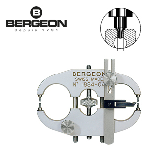 The “figure-of-eight” truing calliper is a small model with parallel opening, precisely engineered for aligning balances. It has a steel safety runner, a ruler and an adjusting lever.