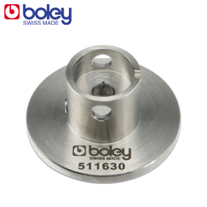 Universal movement holder made of metal with base Ø 31mm and adjustable hollow centre screw, suitable for the hand press bars of Boley and Bergeon. Swiss-Made.