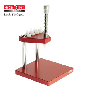 Horotec hand-setting tool with guide fitting for broaches, for easy fitting of hands to wrist- and