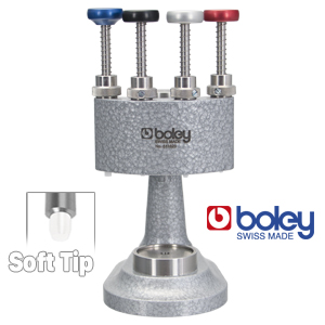 High-quality processed hand setting presses with three or four brooches made of strong cast iron and POM tips. Thanks to the POM tips, no scratches or pressure marks are left behind. Swiss Made.