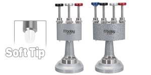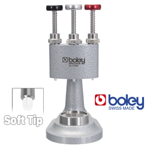 High-quality processed hand setting presses with three or four brooches made of strong cast iron and POM tips. Thanks to the POM tips, no scratches or pressure marks are left behind. Swiss Made.