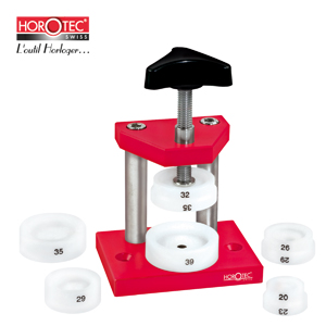 The "Mini-Press" is a small, practical case closer and is used for closing watch cases with push-fit backs and for fitting plastic glasses and mineral crystals.