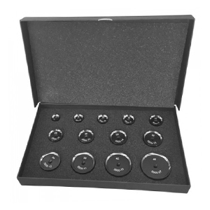 This set consists of 13 hollow aluminium pressure-pieces with thread in diam. 15mm - 48mm.