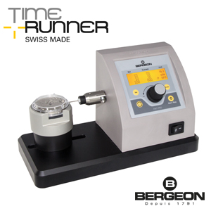 Bergeon winding machine Time Runner with anti slip clutch and digital control. The winding machine serves to damage- and fatigue-free mounting of mechanical watches. The new tool for winding watches through the crown allows to control the following functions on movements with factory stem as well as on complete watches: