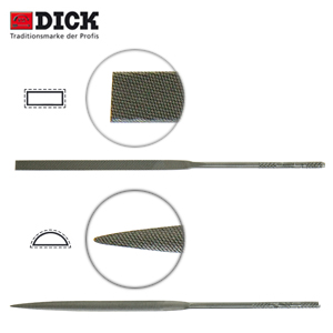 The high-quality needle file set from DICK comprises four different standard files and is ideal for demanding precision work. These files are particularly recommended for working with steel and steel alloys as well as non-lubricating soft metals. Thanks to their slim, tapered shape, round handle and precisely ground edges and tips, they enable accurate results even in delicate applications.