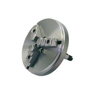 Three-jaw chuck with collet shank, thread Ø of 8.0 mm and an outer Ø of 70 mm. The three hardened and finely ground jaws are reversible and can therefore be used as clamping, turning and drilling jaws.