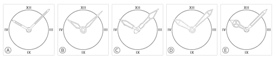 sets of hands Subgroups Ø 1.20 x Ø 2.00mm = ETA 7750 - 7758Minute Hands: L 12.5 mm / Loch-Ø 1.20 mm Hour Hands: L 8.00 mm / Loch-Ø 2.00 mm nameshapelengthHole-Øitem No.hands (pairs)Nickel12.5 / 8.00 mm1.20 / 2.00 mm036972 Ø 1.30 x Ø 1.85mm = LANDERON 48 Minute Hands: L 13.5 mm / Loch-Ø 1.30 mm Hour Hands: L 10.00 mm / Loch-Ø 1.85 mm incl. 3 counter hands nameshapelengthHole-Øitem No.hands (pairs)Yellow13.5 / 10.00 mm1.30 / 1.85 mm036710hands (pairs)steel13.5 / 10.00 mm1.30 / 1.85 mm036712 Ø 1.50 x Ø 2.00mm = ETA 251.262 - 251.272Minute Hands: L 12.5 mm / Loch-Ø 1.50 mm Hour Hands: L 8.00 mm / Loch-Ø 2.00 mm nameshapelengthHole-Øitem No.hands (pairs)Yellow12.5 / 8.00 mm1.50 / 2.00 mm036660
