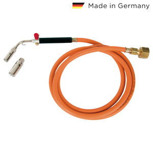 The melting and soldering torch “Direkt” is a very versatile melting, soldering and heating gun. The propane gas torch is supplied with two different torch inserts, 2 m high-pressure hose and gas-connection. Handpiece with special filters, which serves as a flame arrester. The soldering toch can be connected to any standard propane butane gas cylinder.