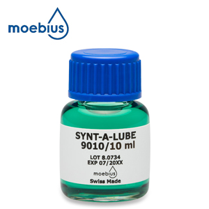 Moebius Synt-a-Lube 9010 is a 100% synthetic universal fluid thin oil based on ether and aliphatic alcohol with excellent resistance to aging and good resistance to pressure. High-quality Swiss watch oil of unvarying quality which neither resinifies nor spreads. “Synt-a-lube 9010” is suitable for all balance bearings, leverl pallets and all jewel bearings.