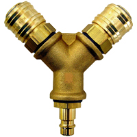 The two-way air valve has a coupling with two outlets for connecting two appliances to the "Jun-