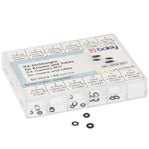 Assortment of 60 gaskets flat and round for the most common crowns and tubes of the brands like RX, TAG and BM.