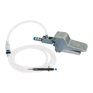 The Venturi complete set is an inexpensive alternative to a vacuum pump. The set is simply connected to a compressor already available by means of a compressed air hose. The compressed air is then converted to a vacuum by operation of the foot-pedal.