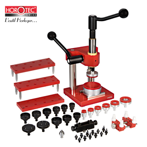A universal key from Swiss production for opening and closing all watch-caseswith a threaded base, closing of pressed caseback, as well as to set of glasses. The different Delrin inserts make it possible to open very delicate cases, or those which have no possibilities for attack. The equipment has two handlevers for precision work. It can used all inserts with M6 thread.