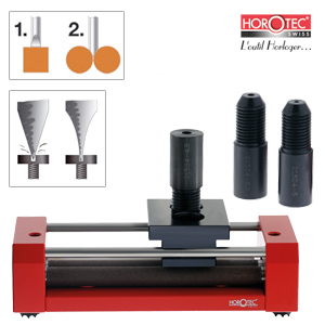Professional grinding tool in a new, improved design with 3 reducing sleeves for regrinding or producing the perfect blade. It enables the production of trumpet-ground blades to prevent damage to high-quality watches with blued or gold screws. Swiss Made.