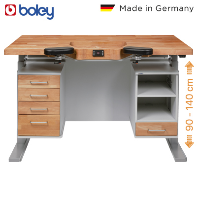 The new generation of work tables for setters and engravers “Flexbo 4.0”, which are ergonomically designed, have been proven to improve working conditions and efficiency in the setting and engraving handcraft. They have been further developed in close cooperation with setters and engravers and are characterized by their ergonomics in several respects: all workbenches are electrically height-adjustable as standard and impress with many well thought-out, ergonomic detail solutions.