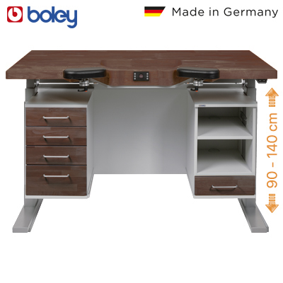 The new generation of work tables for setters and engravers “Flexbo 4.0”, which are ergonomically designed, have been proven to improve working conditions and efficiency in the setting and engraving handcraft. They have been further developed in close cooperation with setters and engravers and are characterized by their ergonomics in several respects: all workbenches are electrically height-adjustable as standard and impress with many well thought-out, ergonomic detail solutions.
