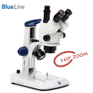 The StereoBlue microscopes BlueLine series by Novex are characterized by their favorable price and its ergonomic design. The StereoBlue is fitted with a 45°-inclined, 360° rotatable binocular head with two fixed 10x/20 mm eyepieces. The eye-spacing may be adjusted between 55 and 75mm. Scope of delivery includes a transparent and a black/white objective plate and two objective clamps.