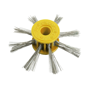 Mattschlagbürste mit geraden Stahlnadeln, besonders gut geeignet für Eismatt- oder Kratzeffekte. Der Mattiereffekt steigt mit der Drahtstärke.