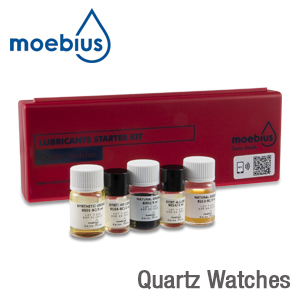 Certified assortment of the most important Moebius lubrificants for mechanical movements. This set contains all the important oils and greases you need for your repairs. Delivered in a practical plastic case.